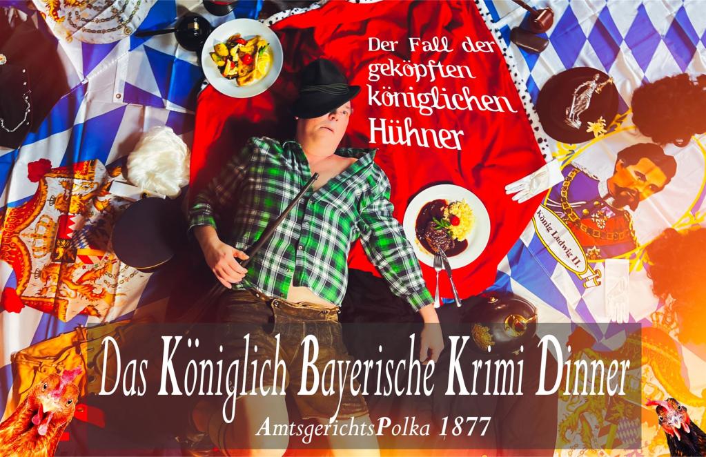 Lachen, Spaß und Spannung beim humorvollen Krimidinner im bayerischen Amtsgericht: Das kuriose Rätsel der geköpften königlichen Hühner wird gelüftet! Begleiten Sie uns in das Jahr 1877 nach Köln in Niederbayern und treffen Sie auf den Hofverwalter Ferdinand Fuchs, der wider Willen zum Angeklagten wird. Die Hühner gehören nichtsahnend König Ludwig II und Kaiserin Sissi von Österreich. Doch Vorsicht: Die 7 Zeugen verwirren und belügen sich gegenseitig und geraten selbst ins Visier der Ermittlungen. Genießen Sie nebenbei ein köstliches 3-Gänge-Menü und lachen Sie herzhaft bei diesem Comedy-Krimi, der Ihnen ein unvergessliches Erlebnis bietet!